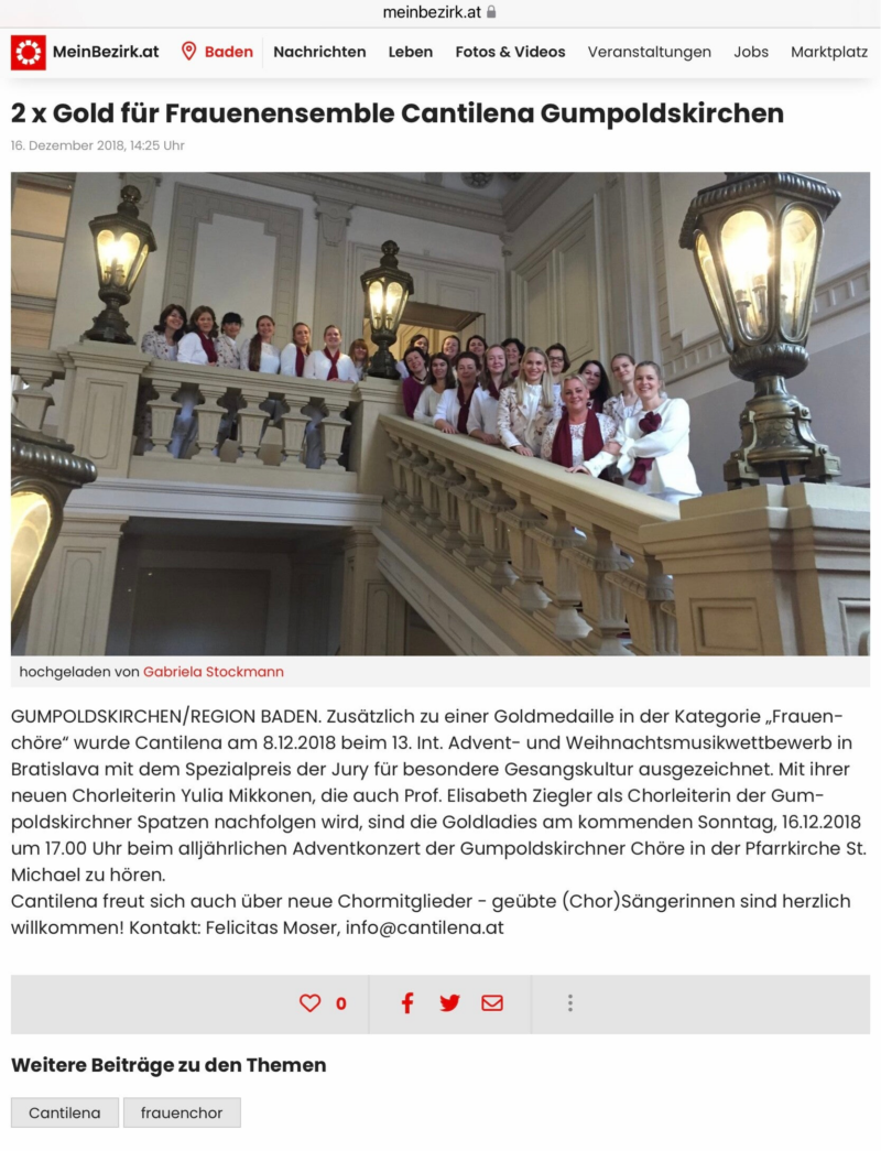 Matthias Schoberwalter blickt nun auf ein erfolgreiches erstes Chor - Jahr mit Cantilena zurück und zeigt sich sehr zufrieden: „Die Stimmqualität ist gut, es ist so viel da und ich arbeite sehr gerne und mit großer Genauigkeit an Rhythmus, Ausdruck und korrektem Stimmsitz. Das macht Spaß.“